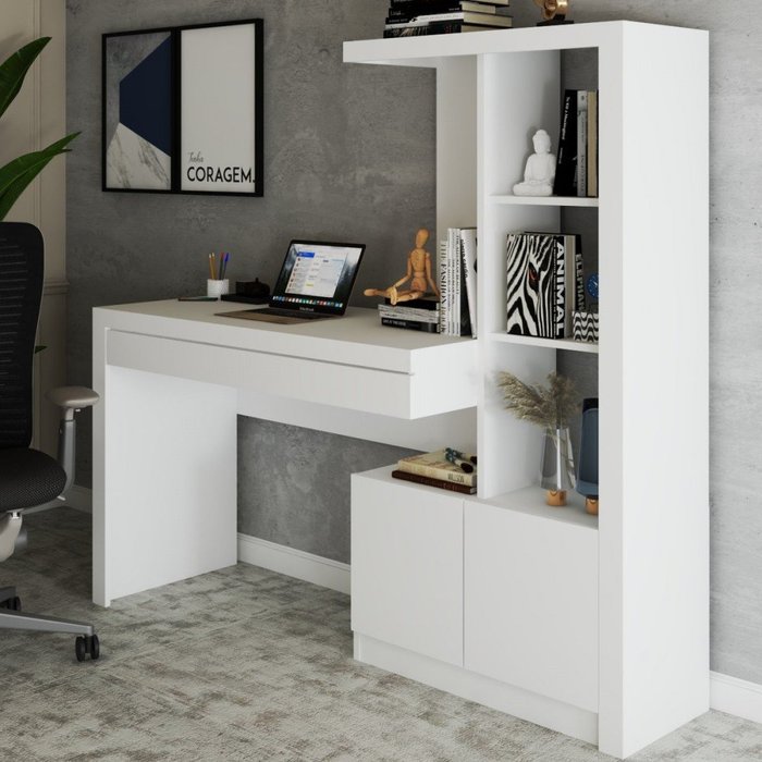 Mesa Escrivaninha 2 Portas 1 Gaveta para Computador Homework Branco - Panorama Móveis