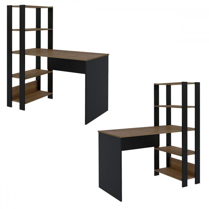 Mesa Escrivaninha Conjunto Match 6 Prateleiras Pinho/preto - Pnr Móveis Preto