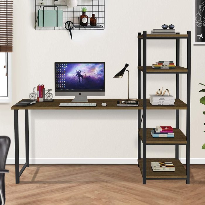 Mesa Escrivaninha Em Aço Com Torre Imbuia Preto Sett Steel Mobile