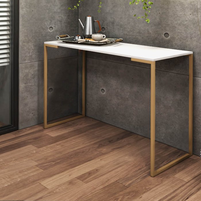 Mesa Escrivaninha Escritório e Home Office Stan Industrial Ferro Dourado Tampo MDF Branco - Ahazzo M