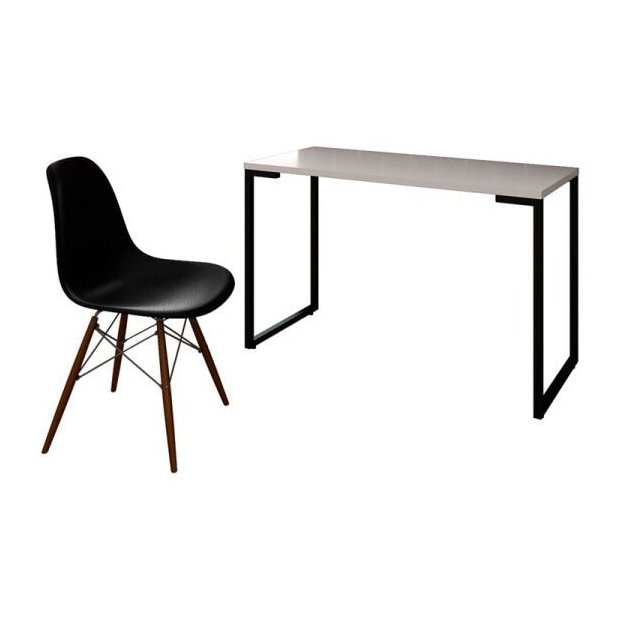 A Mesa Escrivaninha Fit 120cm Branco e Cadeira Charles Preta - Mpozenato, são duas peças práticas e compactas para complementar seu ambiente agregando beleza e organização, seja ele no seu escritório ou home office, a Mesa possui estrutura reforçada e pés metálicos com sapatas niveladoras, acompanha cadeira com design exclusivo em formato anatômico, encosto e assento em polipropileno, pés palito de madeira e armação em aço pintado. Confira!