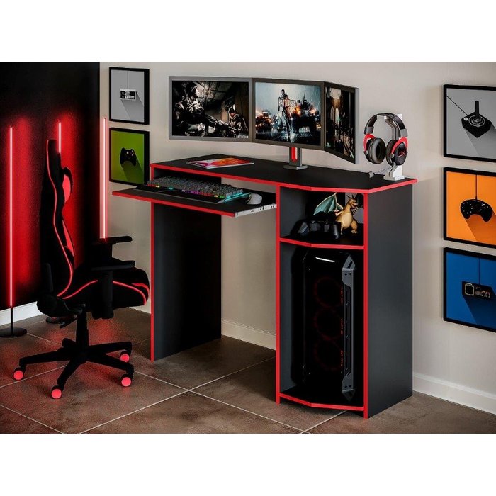 Mesa / Escrivaninha Game com Apoio para Teclado Retrátil e Nicho para Cpu Cor Preto / Vermelho Romar