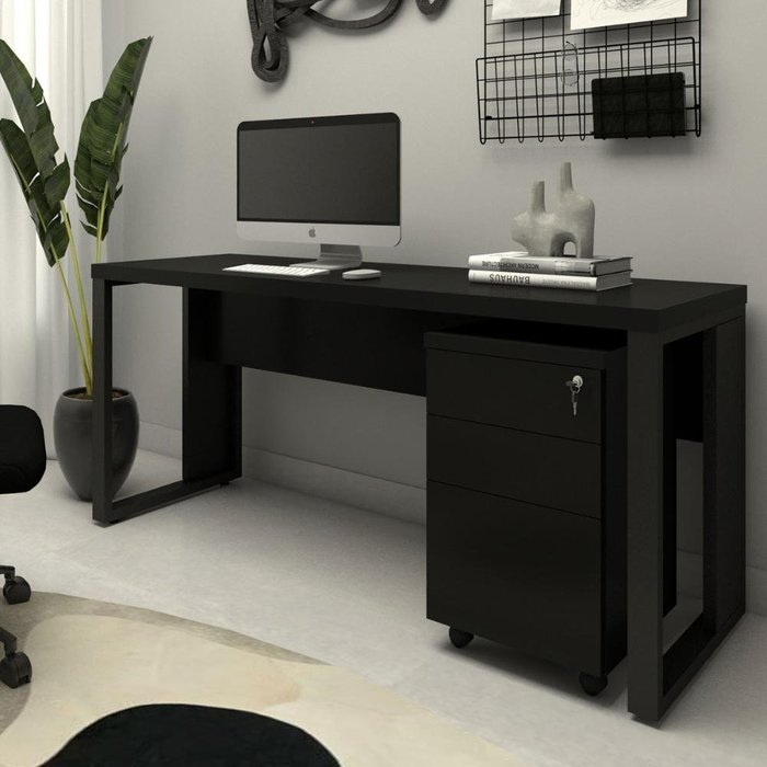 Mesa Escrivaninha Industrial 150cm Gaveteiro Clean Pés Metal Cor:preto