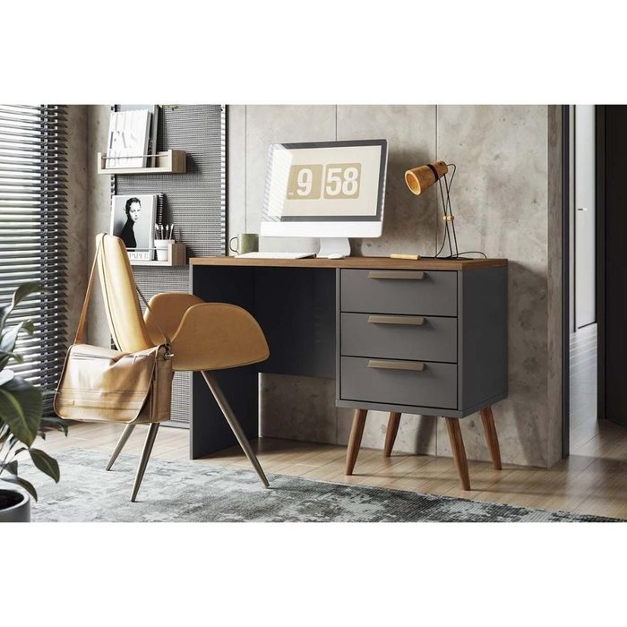 Escrivaninha p/ Escritório New Connect c/ 3 Gavetas Grafitte - Santos Andirá