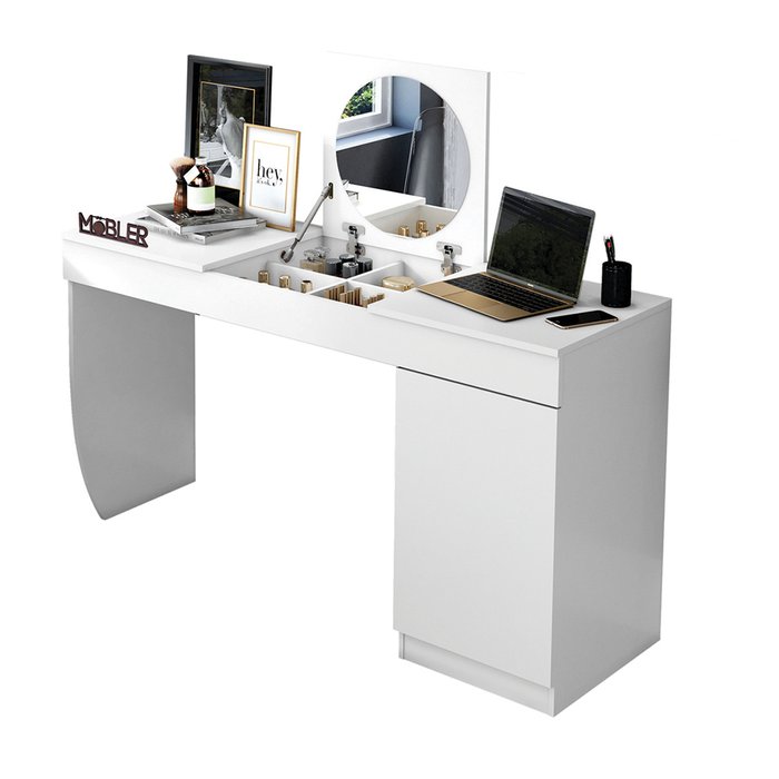 Mesa Escrivaninha Klein com Espelho/ Nicho Organizador Branco - Bela Móveis