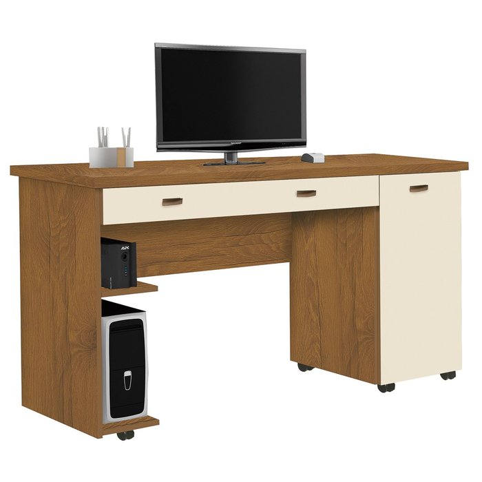 Mesa Escrivaninha para Computador 136cm 1 Porta 1 Gaveta Ariel Mel/Pérola - Móveis Primus Mel/Pérola