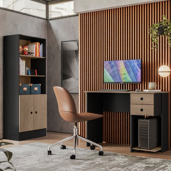 Transforme seu espaço de trabalho com nossa escrivaninha de computador elegante e funcional, equipada com duas gavetas espaçosas do lado esquerdo para organizar seus itens essenciais. Desfrute da combinação perfeita de design moderno e praticidade, criando um ambiente produtivo e organizado. Eleve sua experiência de trabalho com esta escrivaninha única, disponível agora na Amazon! Medidas totais: - 75 cm de altura