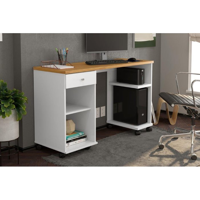 Mesa / Escrivaninha para Computador Mi com Rodízios Cor Branco / Cinamomo Pt