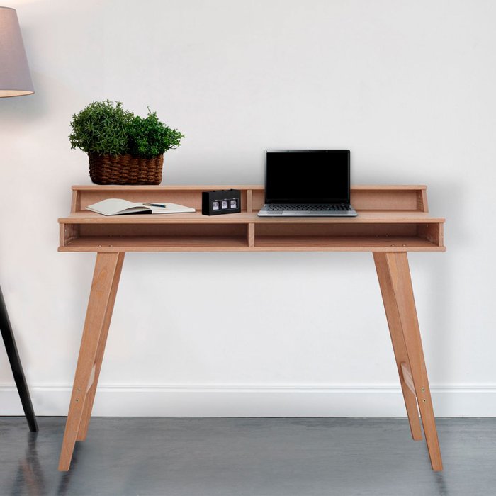 Mesa Escrivaninha Retro Madeira 4 Nichos 1 Prateleira Luna Idimex