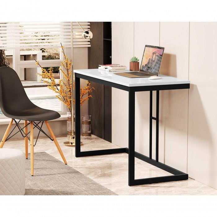 Mesa Escrivaninha Vintage Multiuso com Pés em Aço Cor Branco Branco