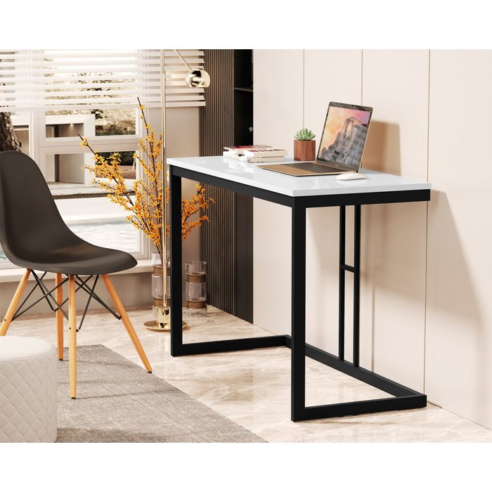 Mesa Escrivaninha Vintage Multiuso com Pés em Aço Moveis House Branco Branco