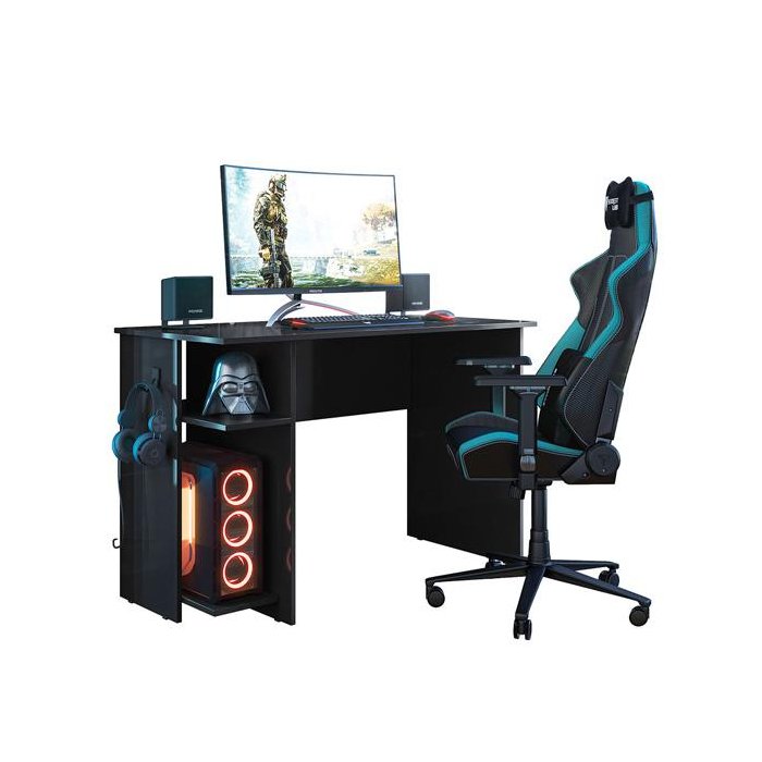 Mesa Gamer 2 Prateleiras Preto Fosco - Qmovi
