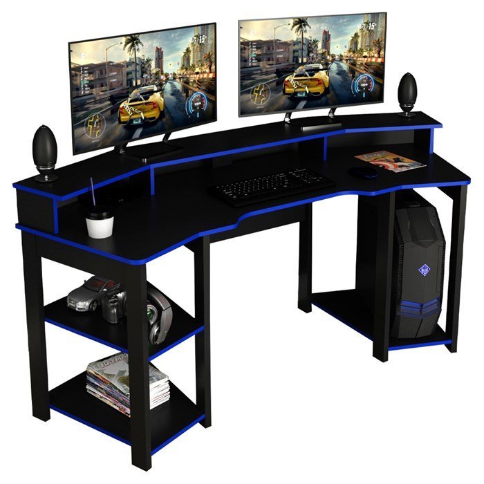 Mesa Gamer Cockpit 3 Prateleiras Me4167 Preto Azul Tecno Mobili Preto Azul