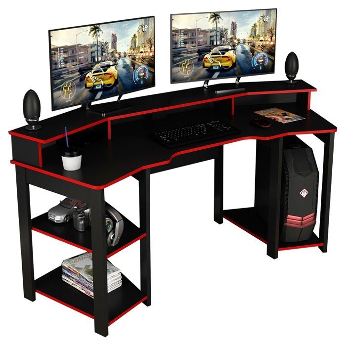 Mesa Gamer Cockpit 3 Prateleiras Me4167 Preto Vermelho Tecno Mobili Preto Vermelho