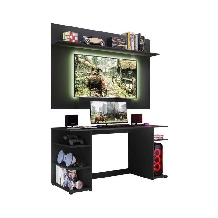 Mesa Gamer com Painel e Suporte TV 55 Polegadas Guilda Plus Multimóveis Preta Preto
