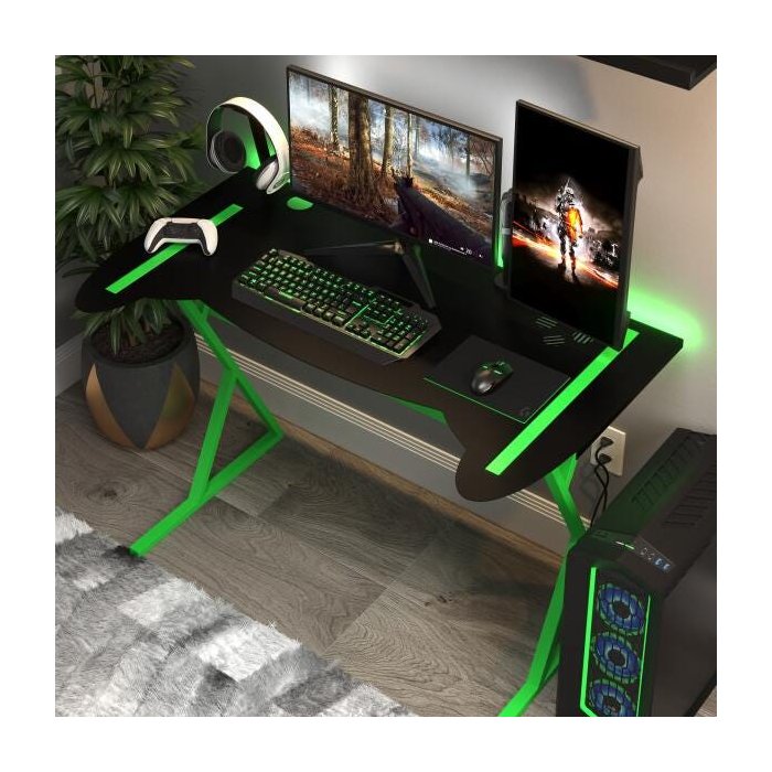 Mesa Gamer Computador Desk PC Metal Modelo Controller Preto com Verde Neon