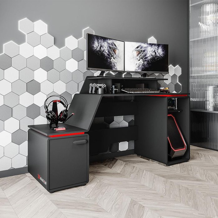 Mesa Gamer E Escritório Xt Racer Space Two Politorno Preto/Vermelho Preto/Vermelho