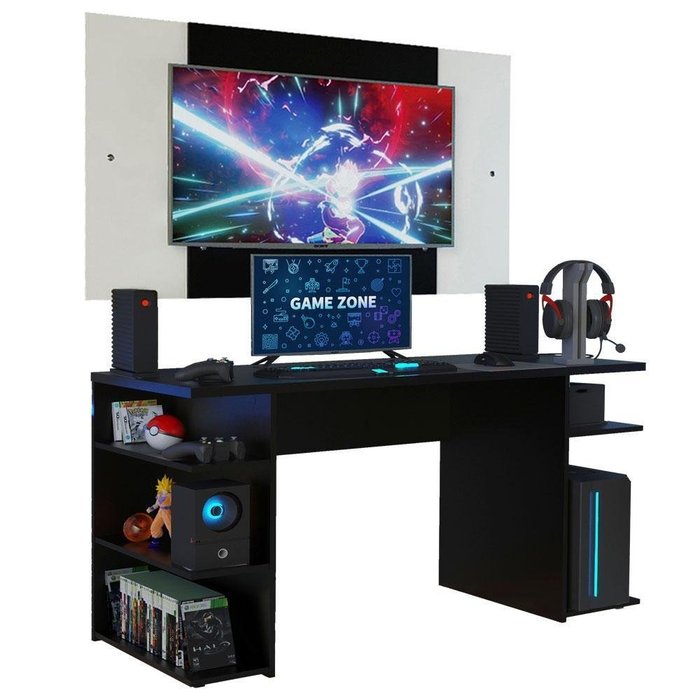 Mesa Gamer e Painel TV até 58 Polegadas Preto Branco Madesa