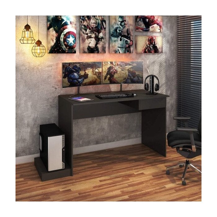 Mesa Gamer Escrivaninha para Computador 1 Gaveta Fellicci Grafite