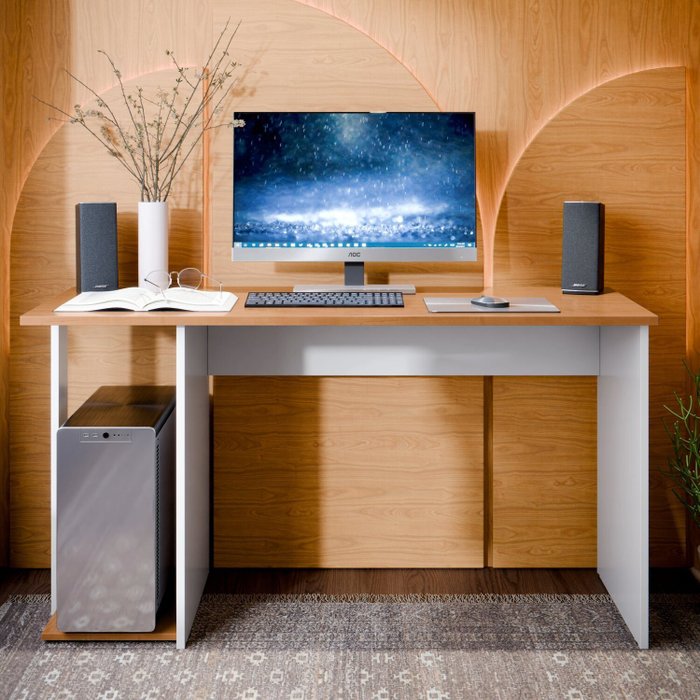 Mesa Gamer Escrivaninha para Computador Pc Notebook Estudo e Trabalho Branco/Nature