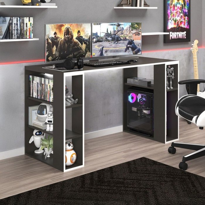 Mesa Gamer Robust 5 Prateiras Grafite Intenso - Deibe Móveis