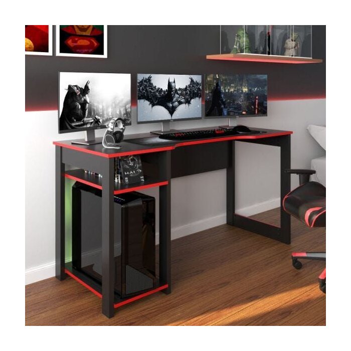 Mesa Gamer Wood Ideal para 3 Monitores Preto/vermelho - Pnr Móveis Vermelho