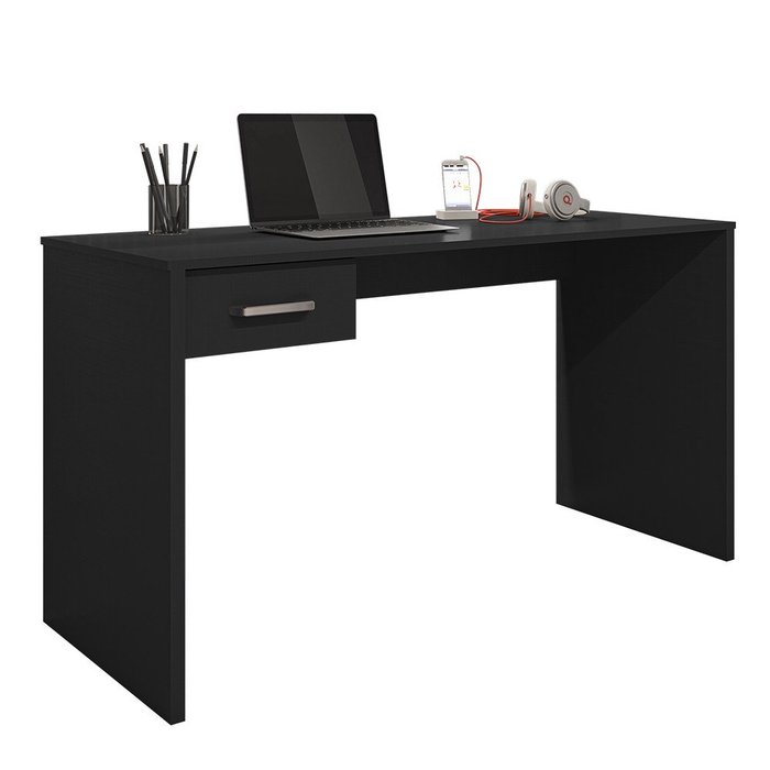 Mesa Home Office Notebook 127cm 1 Gaveta Gávea Preto Trama - Móveis Leão Preto