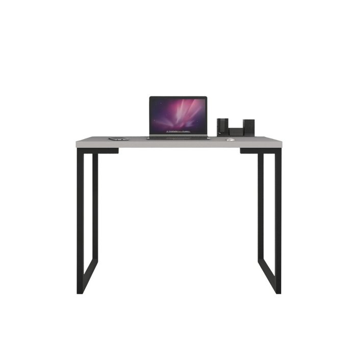 Mesa Industrial Escrivaninha Moderna Mdf 100x45 Metalon Preto Plancasa Cinza Cristal Tx