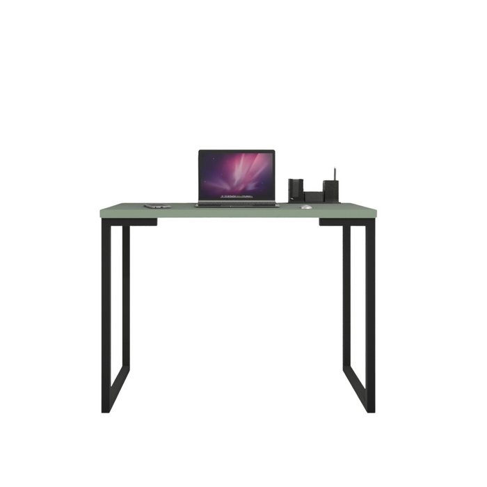 Mesa Industrial Escrivaninha Moderna Mdf 100x60 Metalon Preto Plancasa:verde Jade