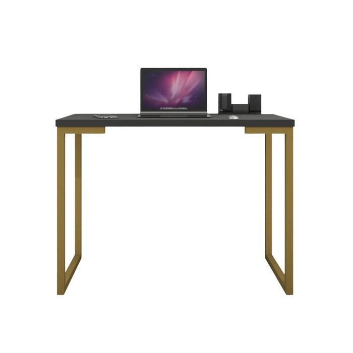 Mesa Industrial Escrivaninha Moderna Mdf 120x45 Metalon Dourado Plancasa Preto Tx