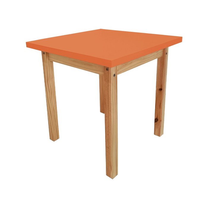 Mesa Infantil 65x65cm Laranja Linha Colorê Base em Madeira Maciça Pinus