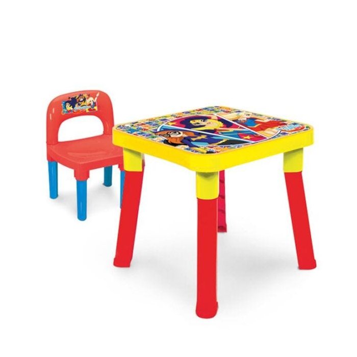 MESA INFANTIL MESINHA SUPER HERO GIRLS DIDATICA COM CADEIRA DESMONTAVEL MENINAS LIGA DA JUSTICA