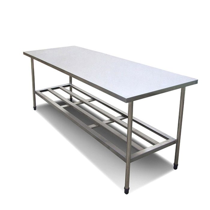 Mesa 100% Inox com grade inferior 1,80 x 0,65m.O seu estabelecimento está desorganizado? A sua mesa de apoio ou de corte está enferrujando com o tempo? para de se preocupar com essas coisas desnecessárias e adquira logo a sua mesa 100% Inox com grade inferior 1,80 x 0,65m.O grande diferencial deste produto está na sua confecção em inox 430, que não deixa enferrujar e mantém o brilho e beleza do produto por muito mais tempo que as convencionais. A mesa 100% Inox com grade inferior 1,80 x 0,65m possui uma extensa prateleira gradeada abaixo da bancada para que sejam postas mercadorias, dando um ar de organização no ambiente. Além disso, o produto apresenta forte resistência a peso, portanto, não precisa se preocupar com o que vai colocar em cima.Detalhes técnicos da mesa 100% Inox com grade inferior 1,80 x 0,65mA reforçada mesa 100% Inox com grade inferior 1,80 x 0,65m está no mercado brasileiro com as seguintes medidas:Comprimento de 1,80m;Largura de 0,65m;Altura de 0,85m.