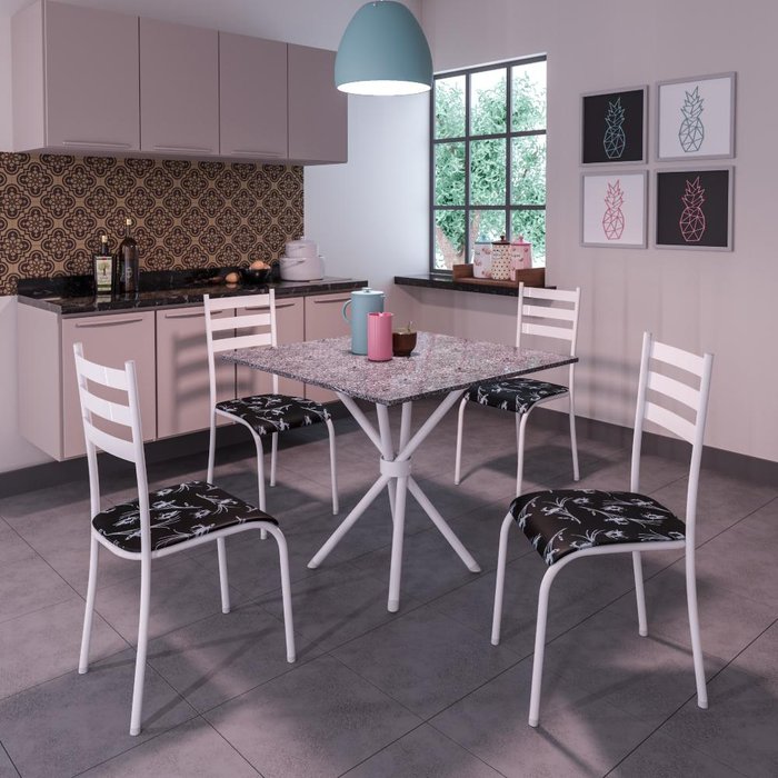 Mesa Itália 4 Cadeiras 591/13 Madmelos Branco/preto Flor