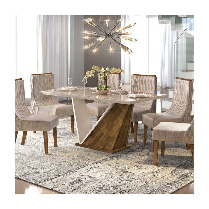 Mesa Jantar Dj Móveis Forme 1700x900 com 6 Cadeiras Jade Demolição com Off White e Linho Claro