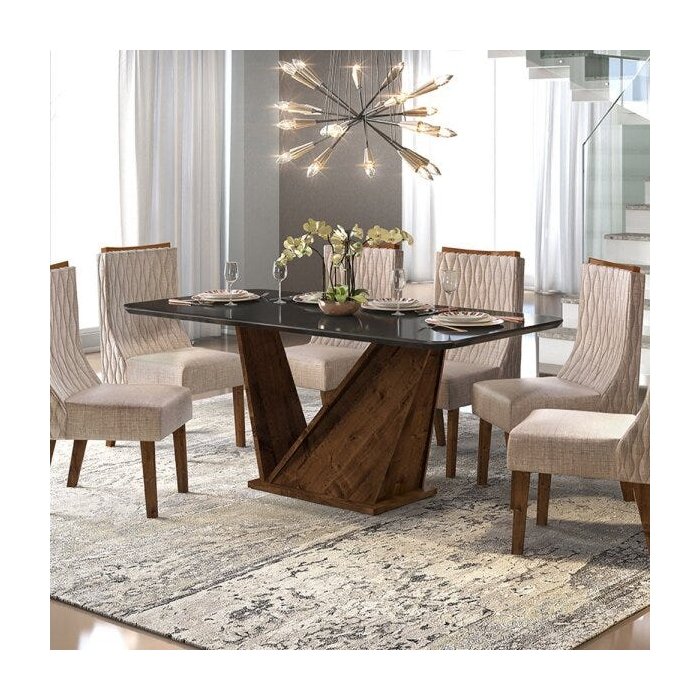 Mesa Jantar DJ Móveis Forme 1800x900 com 6 Cadeiras Jade