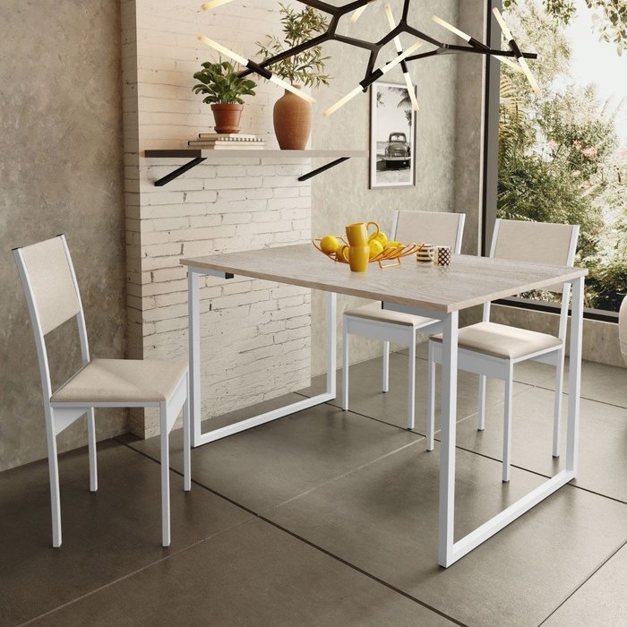 Mesa Jantar Estilo Industrial 120x0,80 Para 4 Lugares - Branco/Mapple Branco/Mapple