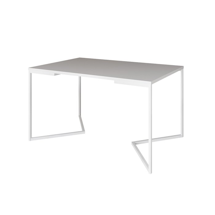 Mesa Jantar Industrial Branca Retangular 137x90cm Base V Ferro Branco Branco