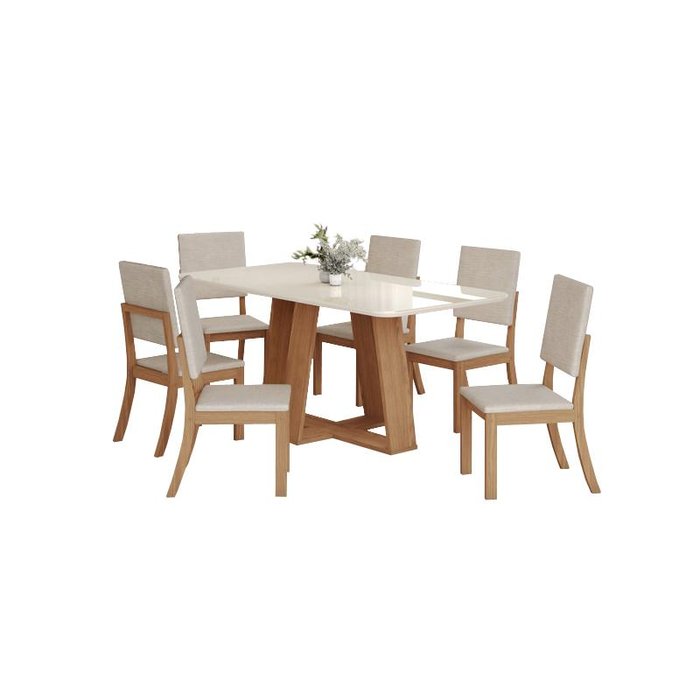 Mesa Jantar Lins 180 6 Cadeiras Milla Linho - Henn Nature/Off White