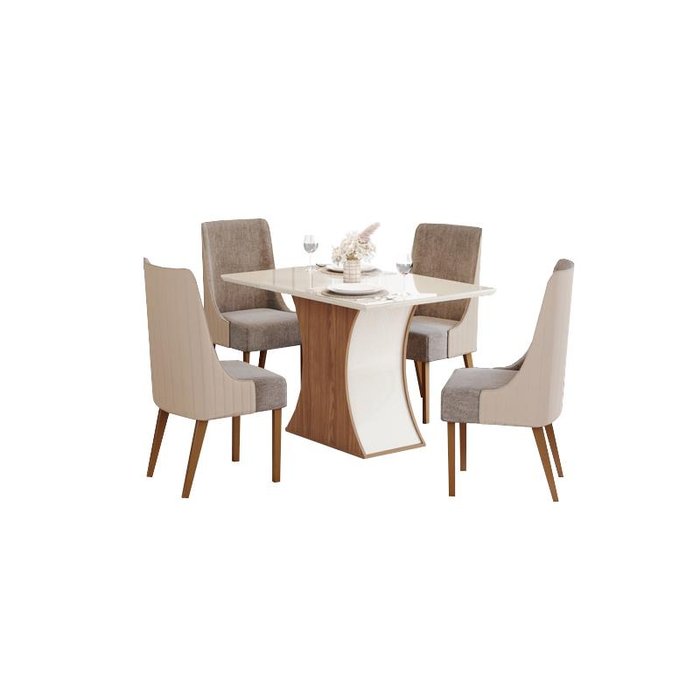 Mesa Jantar Luiza 120 4 Cadeiras Ivy Bege - Henn Bege