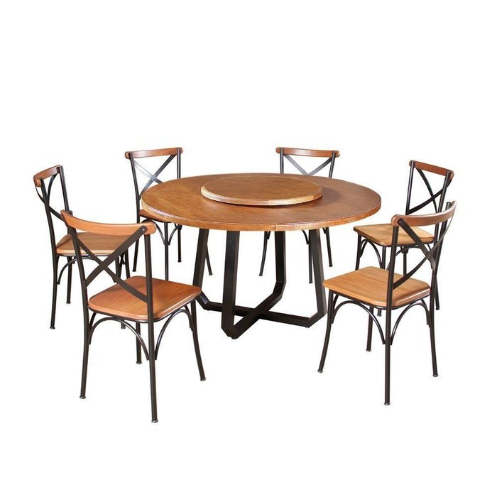 Mesa Jantar Redonda Prato Giratório Clarisse 1,60m Madeira 6 Cadeiras Paris Base Alumínio Castanho - Cor: Marrom