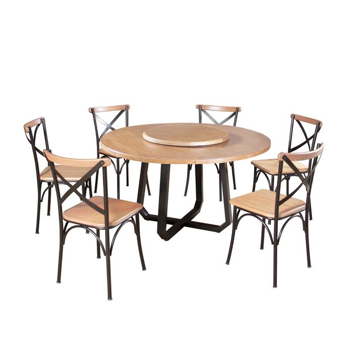 Mesa Jantar Redonda Prato Giratório Clarisse 1,60m Madeira 6 Cadeiras Paris Base Alumínio Natural