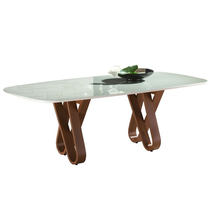 Mesa Jantar Retangular Gistel Madeira Tampo Vidro Branco 4/6 Lugares - 2,00x1,00M