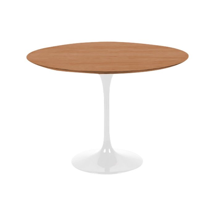 Mesa Jantar Tulipa Saarinen Redonda 90cm Tampo Madeira Pau Ferro Base Branca
