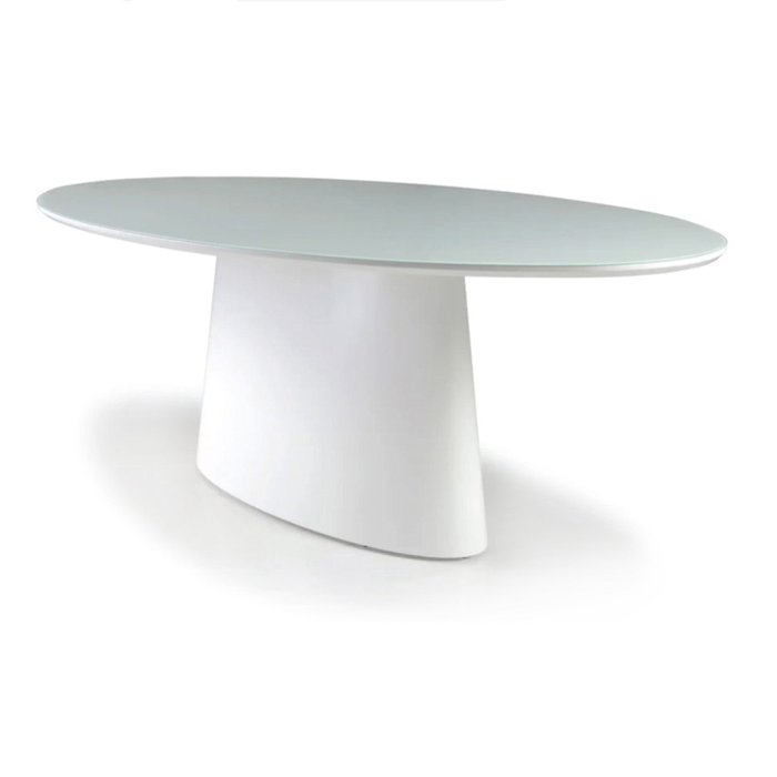 Mesa Jantar Valentina Oval 180 X 90 Cm Base Laminada Tampo Vidro Branco