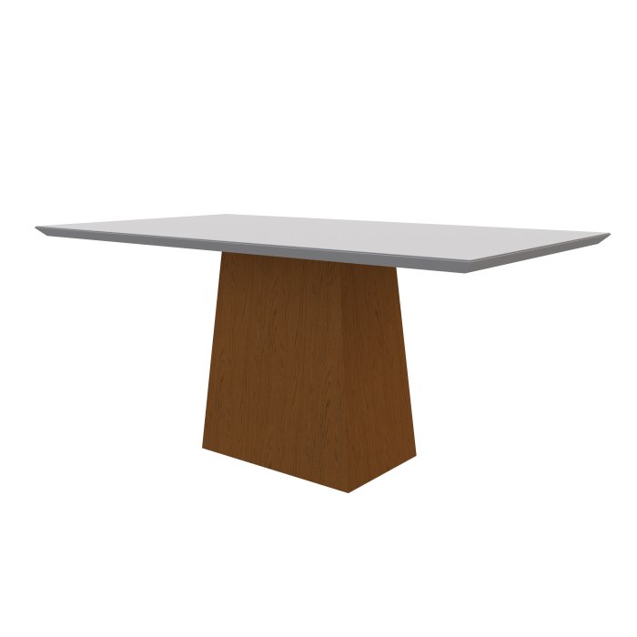Mesa com estrutura 100% em MDF, vidro colado sobre o tampo chanfrado