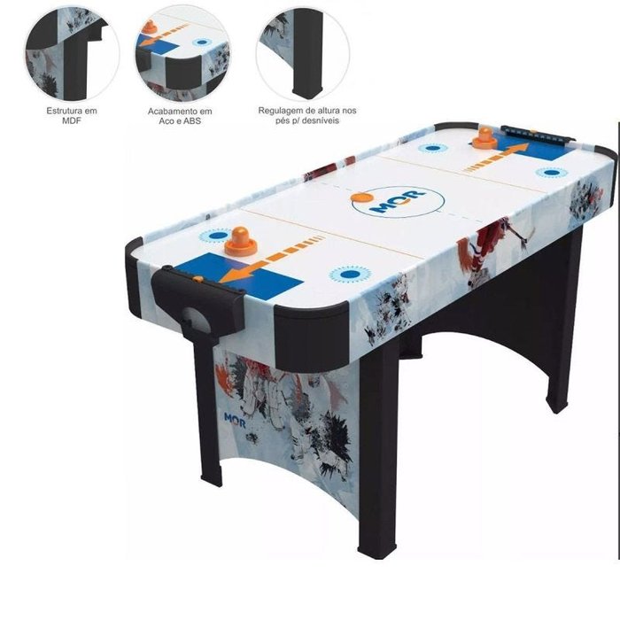 A nova linha de jogos da Mor veio para completar a diversão da sua família e amigos. O Air Hockey Rush da MOR é produzido em MDF com acabamentos em aço e ABS. Além disso possui pés com regulagem de altura que possibilita posicionar o mesmo em qualquer superfície com pequenos desníveis. É ideal para quem tem pouco espaço e quer reunir os amigos e família para se divertir. Características - Composição/Material da Mesa: Estrutura Em Mdf, Acabamentos Em Aço E Abs - Composição/Material do Disco: Polipropileno - Composição/Material dos Rebatedores: Polipropileno E Poliéster - Regulagem de altura nos pés para desniveis - Carregador elétrico BIVOLT - Disco em Polipropileno ( 5 cm de diâmetro ) - Simples Montagem e Acompanha Manual. Conteúdo da embalagem - 1x Mesa de Air Hockey Rush - 3x Discos - 3x Rebatedores Dimensões do produto - Rebatedores Diâmetro: 6,7 cm Altura: 5,5 cm - Mesa Altura: 79 cm Largura: 62,5 cm Comprimento: 1,51 cm - Disco Diâmetro: 5 cm Obs.: - Imagens meramente ilustrativa - Produto enviado por Transportadora 3 Meses de garantia contra defeitos de fabricação *31000 Mod: 009174 / 3746