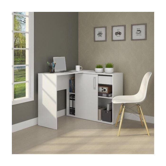 Mesa L ou Reta Escrivaninha Home Gaveta Prateleira Branca Branco