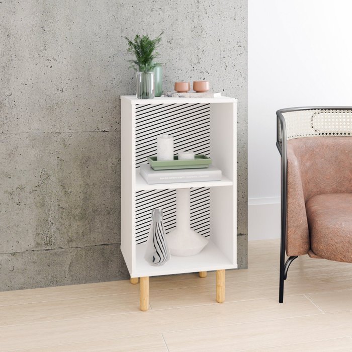Mesa Lateral 2 Nichos BRV Móveis Branco/Adesivo/Pinus Claro