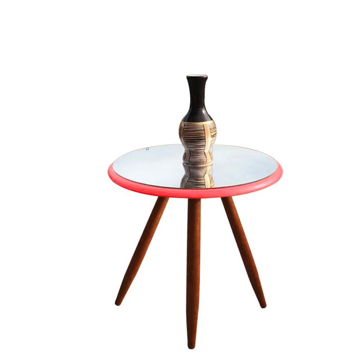 Mesa Lateral Alba com Espelho Pés Palito Vermelho - Sts Móveis